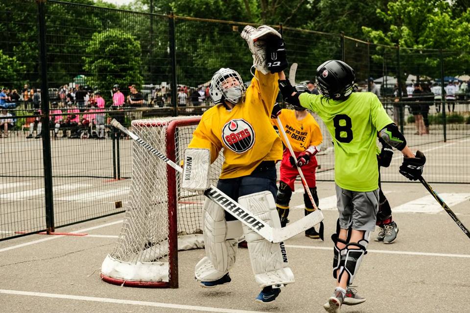 GAMES ARE PLAYED 4 ON 4 PLUS A GOALIE